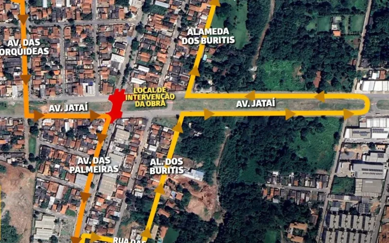 Durante os trabalhos, o trânsito será desviado. Quem vem do setor Santa Luzia em direção ao Jardim dos Buritis deverá acessar a Rua das Avencas e seguir pelas ruas Castanheira, Baunilha e Vitória Régia, voltando à Avenida Jataí após o trecho em obras. Já quem sai do Jardim dos Buritis para o setor Santa Luzia ou BR-153 deve utilizar a Avenida Geralda Bufáiçal Pinto, passando pela Rua das Orquídeas e depois pelas ruas das Rosas e das Oliveiras, até retomar a Avenida das Palmeiras.