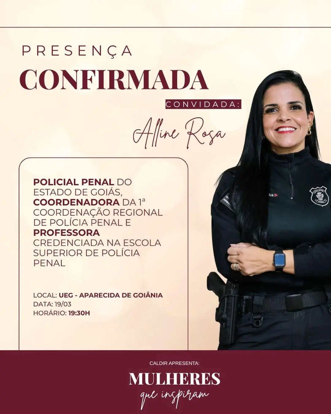 A roda de conversa terá três convidadas com atuação em áreas importantes do serviço público e da Justiça em Goiás. Entre elas está Alline Rosa, policial penal do Estado de Goiás, coordenadora da 1ª Coordenação Regional de Polícia Penal e professora credenciada na Escola Superior de Polícia Penal. O debate também contará com Bruna Coelho, delegada da Polícia Civil de Goiás com atuação de destaque na Delegacia Especializada no Atendimento à Mulher. Completa a mesa Ivana Farina, procuradora de Justiça do Ministério Público de Goiás e ex-conselheira do Conselho Nacional de Justiça.