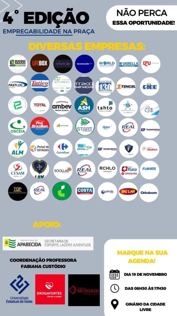 A Feira de Empregabilidade é uma iniciativa que visa não apenas criar oportunidades de emprego, mas também promover o desenvolvimento econômico e social da região. O evento é parte do programa “Empregabilidade na Praça”, uma extensão do curso de Administração da UEG, que visa integrar empresas, estudantes e comunidade em uma rede de oportunidades.
